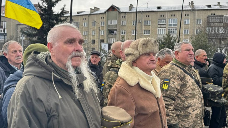 Учасники пам’ятного віча на честь 117-річчя з дня народження Степана Бандери в Івано-Франківську, 1 січня 2026 року. Суспільне Івано-Франківськ/Ігор Попик