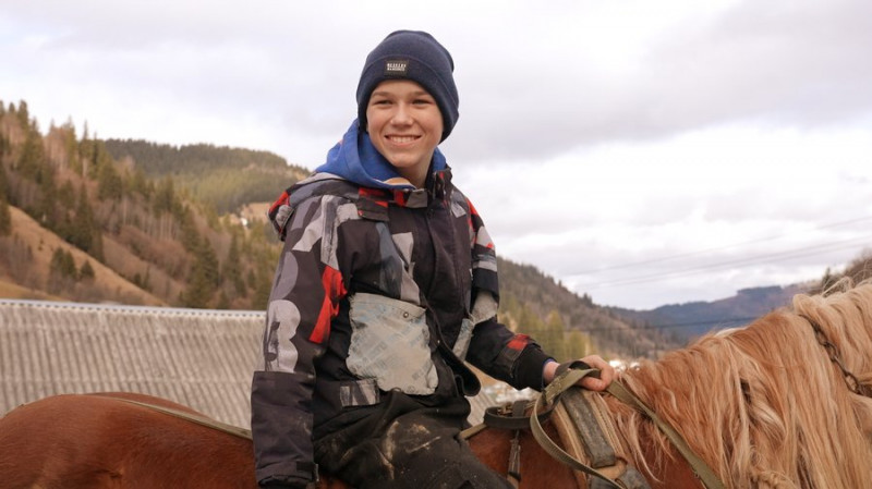 Житель села Гринява Василь Рибчук. Суспільне Івано-Франківськ/Назар Вінтонюк— Не бійтеся, він не кусається.— А ти відколи на коні вмієш їздити?— Від 5-6 років. У мене дідусь — фірман. Він мене раз поклав на коня, і вже все. Але кінь був чемний, "на цапа"На задні ноги не ставав.