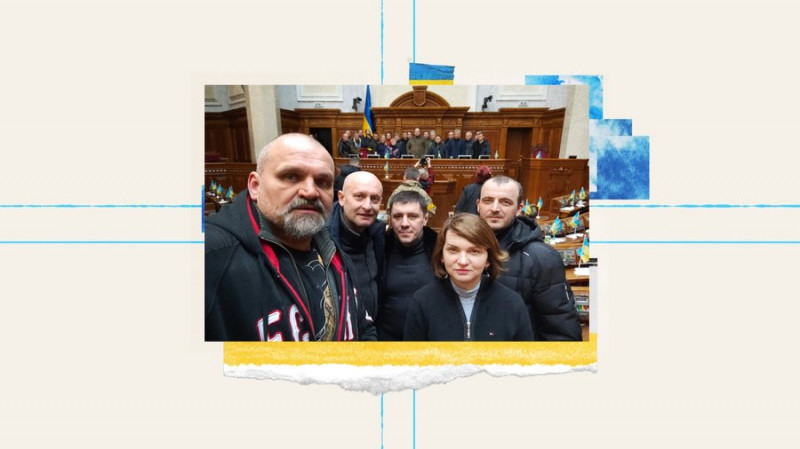 Володимир Тимофічук (перший зліва) з іншими народними обранцями від Івано-Франківщини. Колаж: Суспільне Івано-Франківськ