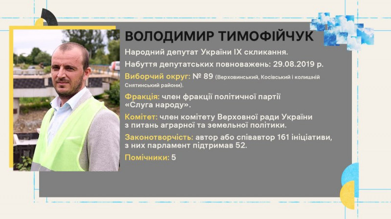 Візитка нардепа Володимира Тимофійчук. Колаж: Суспільне Івано-Франківськ