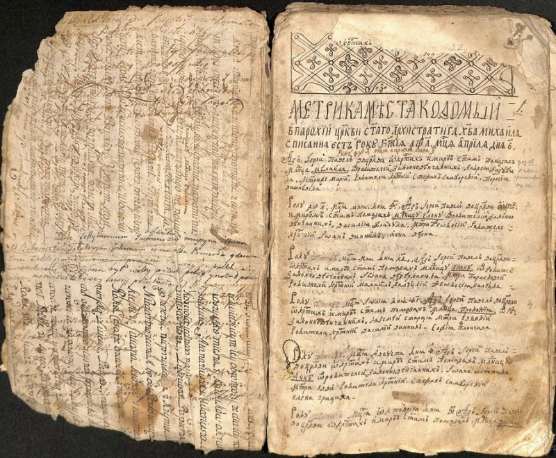 Найдавнішими друкованими документами, які зберігаються у фондосховищах нашого музею, є архів Михайлівської церкви Коломиї, так звані метричні книги шлюбів, народжень та смертей коломиян. Це є середина ХVIII століття. Написані вони латиною, частково — церковнослов'янською мовою.