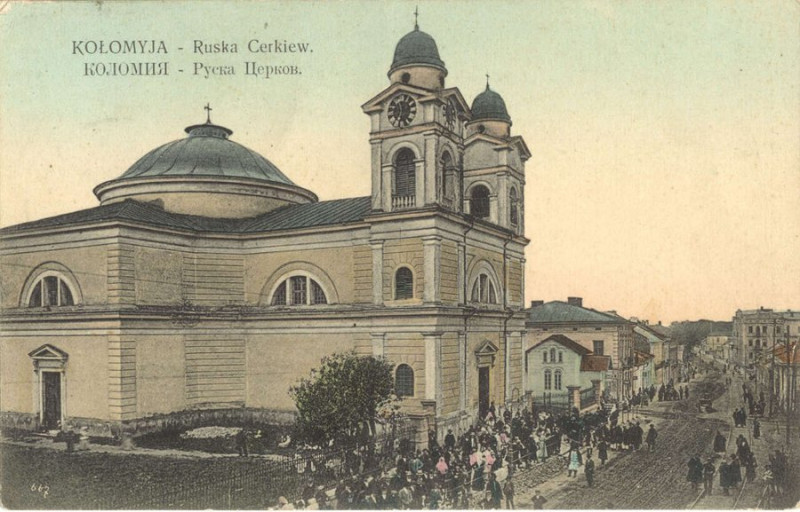 Церква святого Архистратига Михаїла у Коломиї, зведена на місці домініканського костелу, початок XX століття. Листівка з оцифрованих фондів Музею історії міста Коломиї