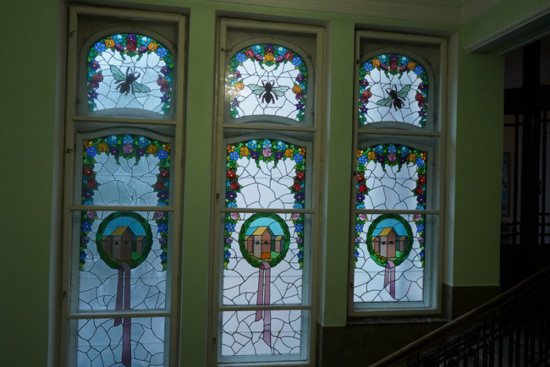 Вітражі у музеї, на яких зображені вулики і бджоли, Коломия. Суспільне Івано-Франківськ/Андрій Москалюк