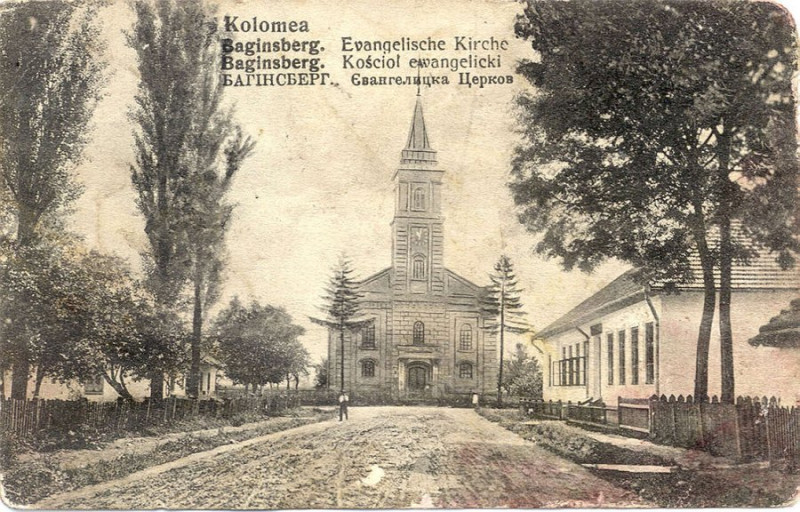 Кірха у німецькому поселенні в Коломиї, початок ХХ століття. Листівка з оцифрованих фондів Музею історії міста Коломиї