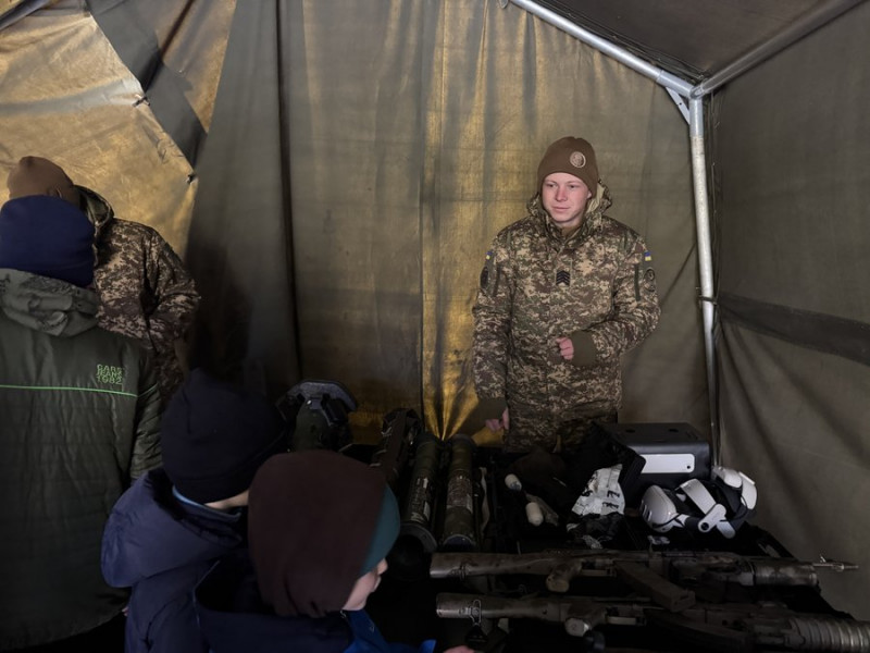 "Це — найдорожча репліка автомата Калашникова. Також представляємо VR-окуляри, які працюють в парі з помпою, для збиття і FPV-дронів. Ними найбільше цікавляться юні відвідувачі", — говорить військовослужбовець Богдан Калетнік.