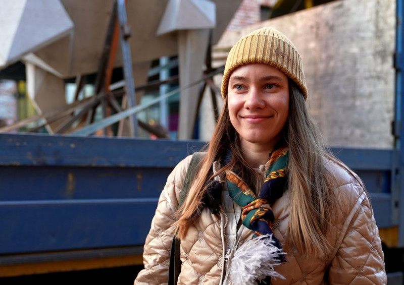 "Мені подобається структура фігури оленя, її об'єм. Ця скульптура — про волю, простір, любов до природи. Вона зараз символізує шлях, який проходить багато українців — евакуацію. Цей шлях, окрім страху, приносить нові можливості, знайомства, розвиток", — каже Христина Федорак.