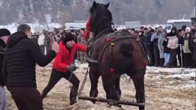 Скриншот з відео фестивалю “Коні Бойківщини”, 25 січня 2026 року, Івано-Франківщина. Facebook/UAnimals