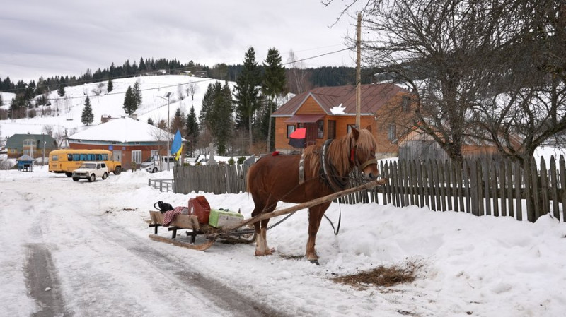 "Переважно в кожній хаті є кінь. От навіть автобус сюди приїхав — щось люди купили в районі, то туди, на горб, або на спині нести, або що. А так — впріг коня й собі довіз що треба. Такий транспорт — і зима, й літо", — говорить Владислав.