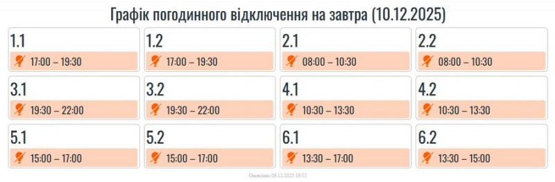 Графіки погодинних вимкнень електроенергії, що діятимуть на Івано-Франківщині 10 грудня. Сайт/”Прикарпаттяобленерго”