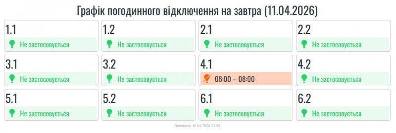 11 квітня на Івано-Франківщині діятимуть графіки погодинних відключень електроенергії для населення. Світло вимикатимуть з 6:00 до 8:00.