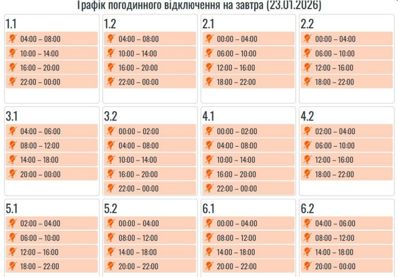 "Завтра, 23 січня, в усіх регіонах України, зокрема на Прикарпатті, будуть застосовуватися графіки погодинних вимкнень", — йдеться у дописі енергетичної компанії.