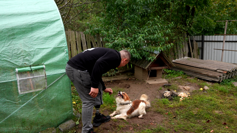 Юрій Шеремет грається зі своїм собакою Суспільне Івано-Франківськ