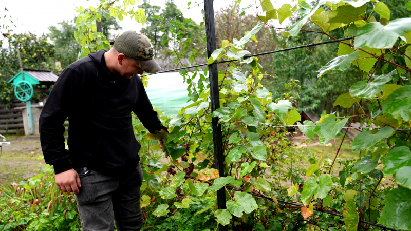 Ветеран Юрій Шеремет доглядає за виноградником. Суспільне Івано-Франківськ