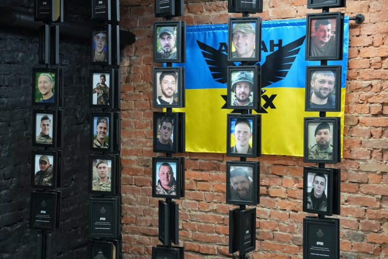 У приміщенні закладу облаштували меморіальну кімнату, де розмістили фотографії бійців, а позаду кожної — їхню біографію.