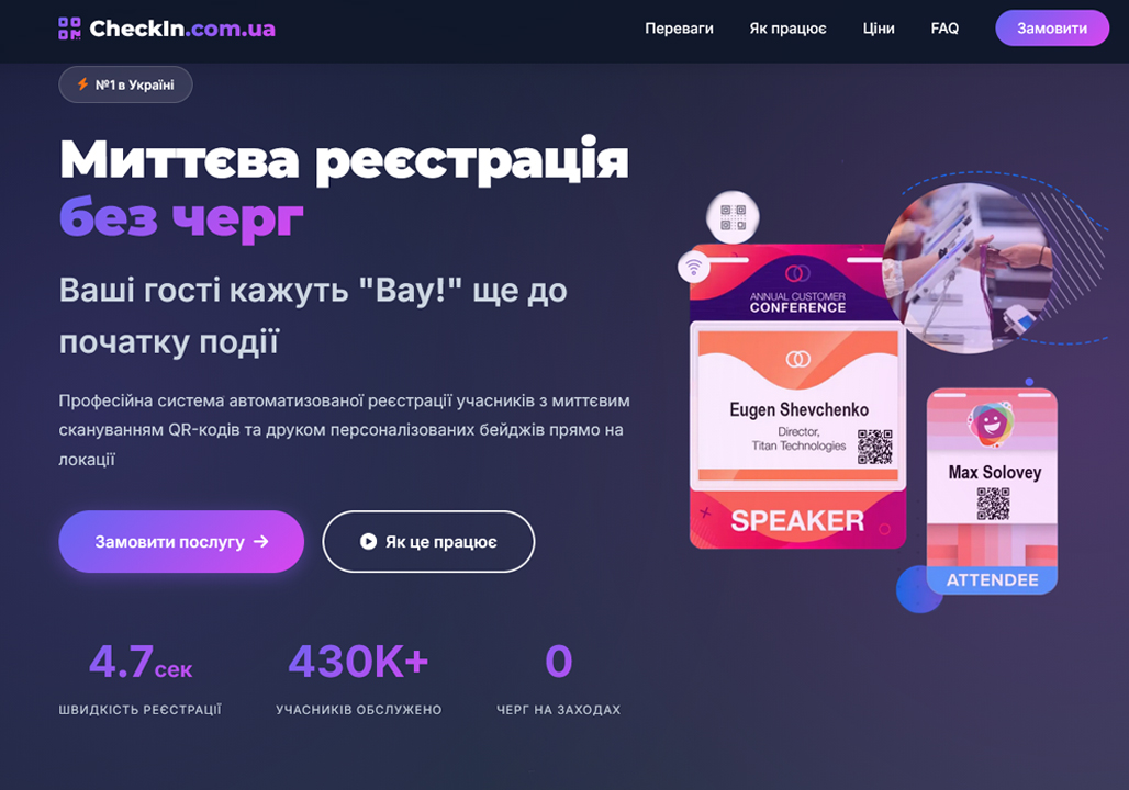 Друк бейджів, трекінг зон, стікери для обміну контактами та єдина база учасників – усе це дозволяє зібрати максимум даних без додаткового навантаження на команду.