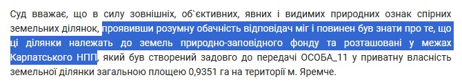 А ось ще одна справа (№354/1333/24), але з протилежним результатом: ідеться про землі Карпатського національного природного парку, які були незаконно приватизовані.