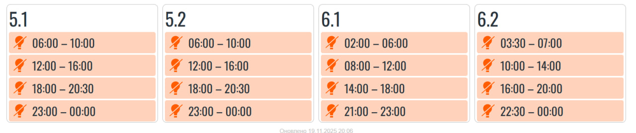 - У Вайбер-бот компанії: Відсутнє світло – Черга вимкнень.