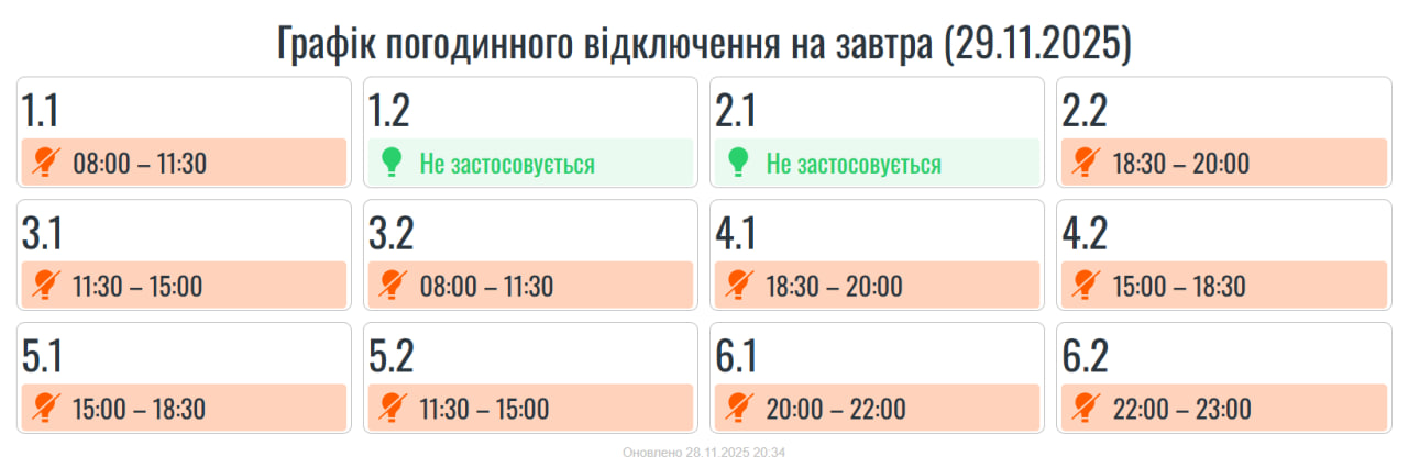 У п’ятницю, 28 листопада, в Івано-Франківській області діятимуть графіки погодинних вимкнень електроенергії.