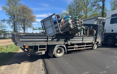 Вантажівка після зіткнення з легковиком Renault, Калуське шосе в Івано-Франківську, 27 квітня 2026 року. Поліція Івано-Франківської області