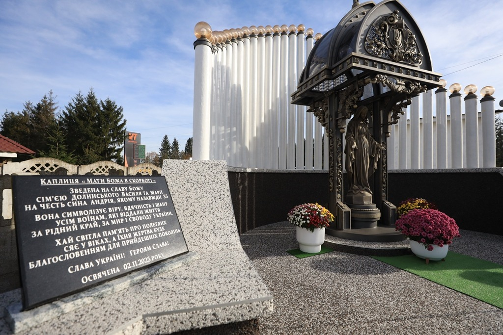 У неділю, другого листопада, на Алеї Героїв у Городенці відбулося освячення Ротонди Матері Божої у скорботі. Про це повідомили в Івано-Франківській обласній державній адміністрації, пише Фіртка. Ротонду звела родина Героя Андрія Долинського — воїна, який на початку повномасштабного вторгнення добровільно повернувся з-за кордону та загинув у бою поблизу села Терни Краматорського району Донецької області. На Алеї Героїв спочивають шістнадцять воїнів, серед них — і Андрій Долинський. Освячення здійснили отці-декани Ігор Левицький, Богдан Мороз та Василь Скрипка, які разом із духовенством громади помолилися за душі загиблих.