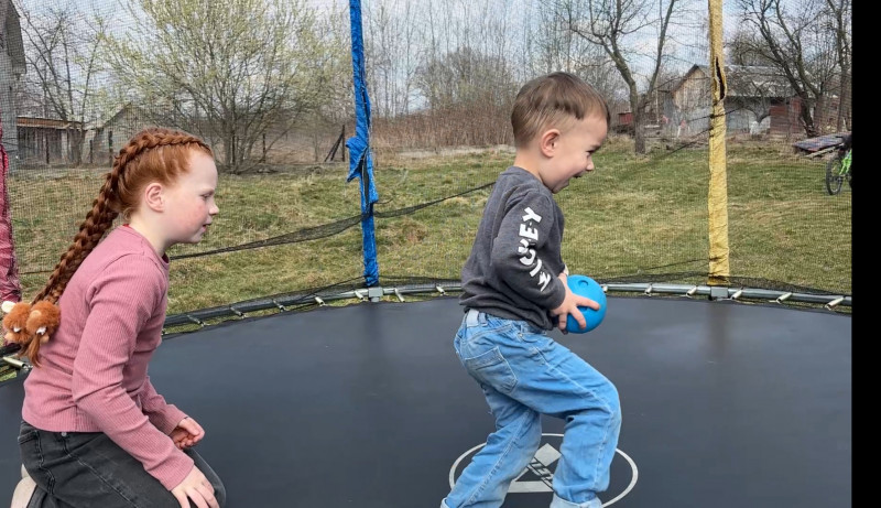 "Ігри грають, на батуті скачуть, на велосипедах катаються, м'яча грають, на тарзанкуТарзанка — це спортивно-ігровий атракціон, канат або мотузка, підвішена до опори (дерева, конструкції), призначена для розгойдування та стрибків біжать. Найчастіше вони хованки грають. От велосипед — то їхнє. Мають, де займатися, і мають чим займатися", — розповідає Оксана Осадчук.