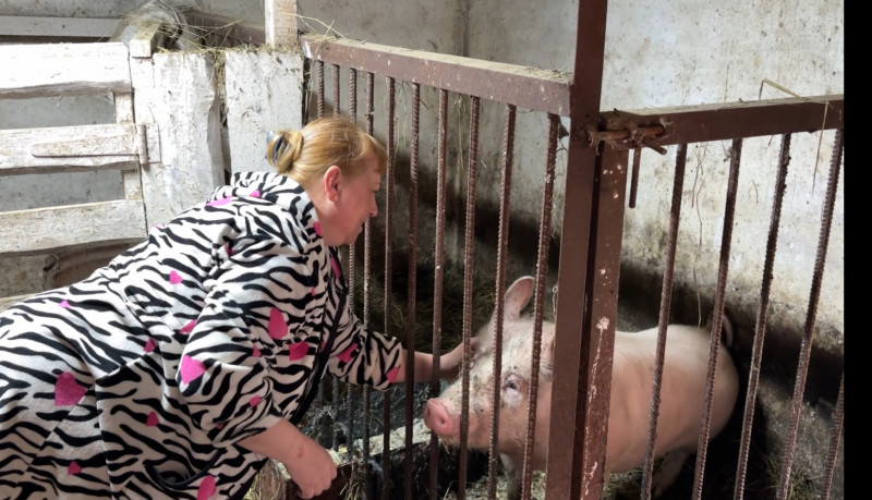 Оксана Осадчук показує порося Джорджика, Слобода-Небилівська. Суспільне Івано-Франківськ