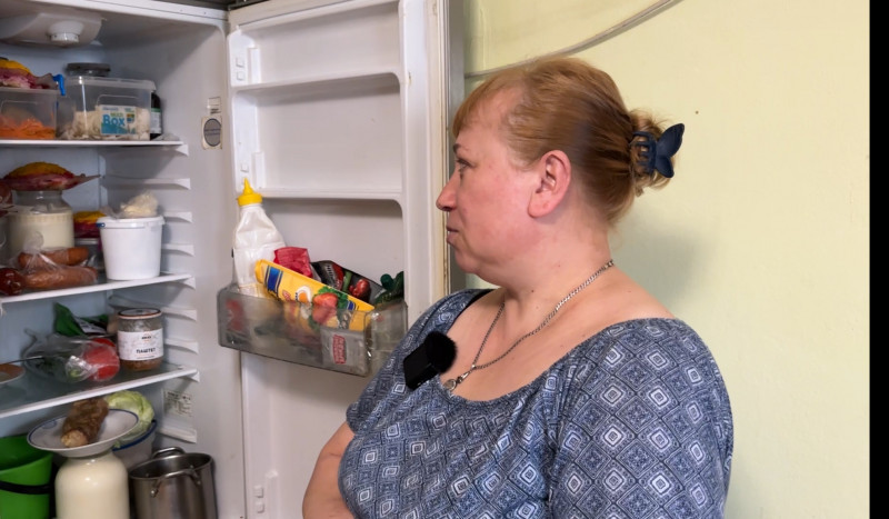 Оксана Осадчук біля холодильника. Суспільне Івано-Франківськ/Дмитро Ткач