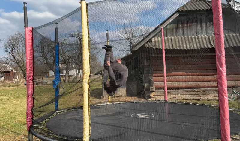 10-річний Андрій Осадчук робить сальто на батуті. Суспільне Івано-Франківськ