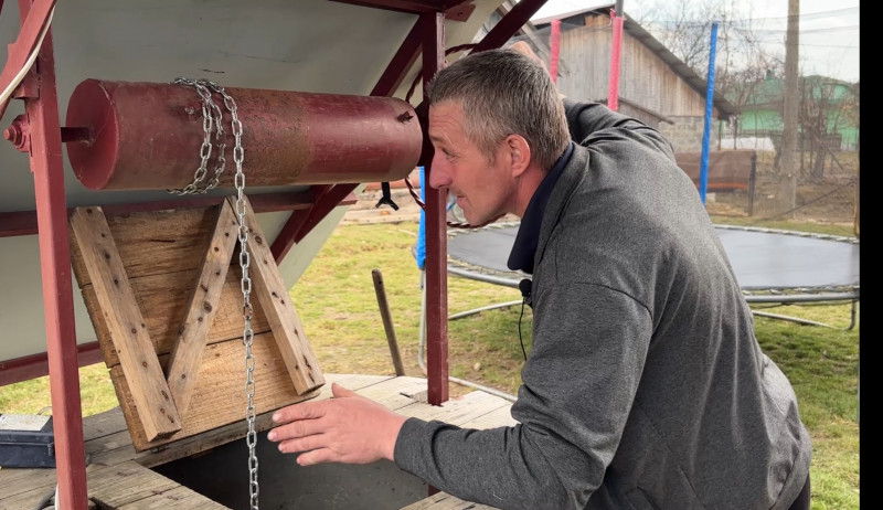 Володимир Осадчук набирає воду з криниці, Слобода-Небилівська. Суспільне Івано-Франківськ/Дмитро Ткач