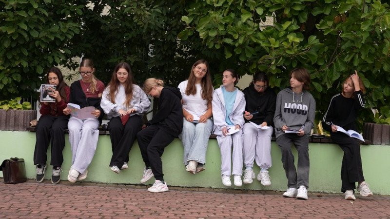 Учні на уроці у внутрішньому дворику Городенківського ліцею імені Антона Крушельницького. Суспільне Івано-Франківськ