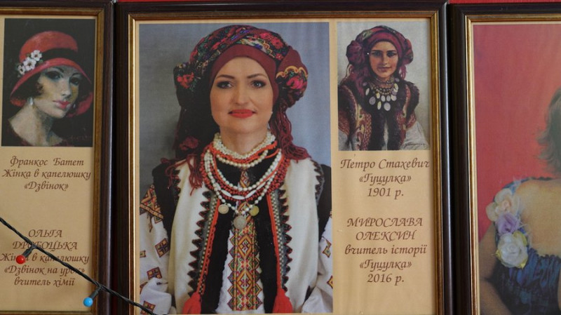 "Петро Стахевич, "Гуцулка" 1901 року. Мирослава Олексин — вчителька історії з 2016 року. Це — моя дружина. Вона є заслуженою вчителькою України. До речі, єдиною тут. Має десь 40 переможців олімпіад в Україні. Якщо що, вона тут працювала, коли я ще не був директором".