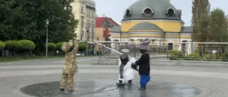 Скульптури малюків-засновників Києва перевдягли з нагоди Дня захисників та свята Покрови – Новини України Фото: facebook.com/volodymyr.zhuravel На Поштовій площі до Дня захисників і захисниць України, а також Дня Новини України