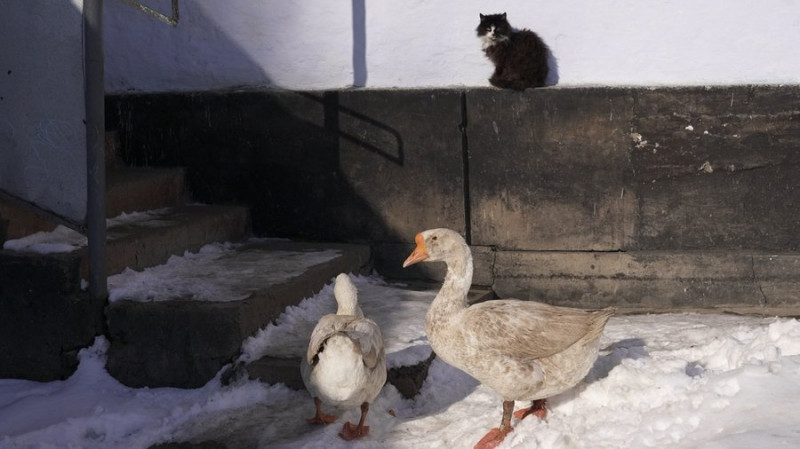 "Ми закриваємо стайню і їм тут тепло. Я гусей пустила, бо сьогодні більш-менш тепло на вулиці. Учора майже 19° морозу було, то я їх не пускала. Чоловік каже: "Та пусти". Я йому відповіла: та де, та то зимно", — розповідає жінка.