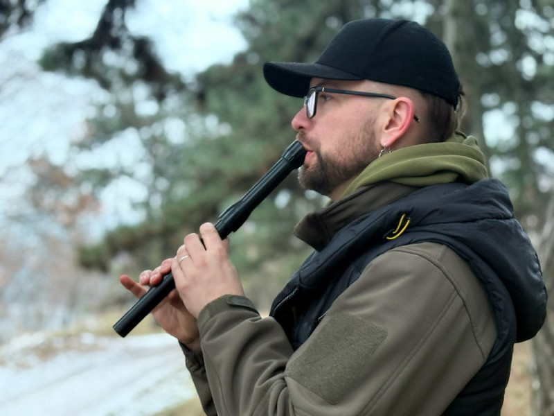 На війні музикант не розлучається з своєю сопілкою та грає в окопах.