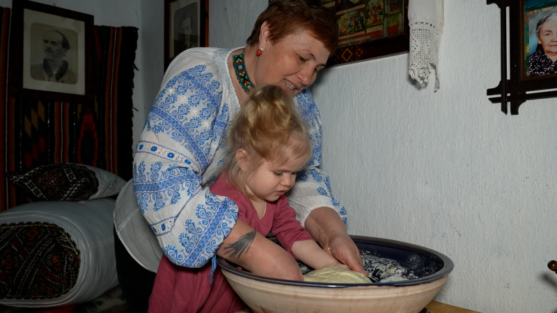 Розпалити піч у родині вміють і діти. А пекти паску Мирослава вчить навіть онучку Варвару, якій ще немає двох років. Маленька помічниця пробує місити тісто разом із бабусею. Господиня каже: для неї важливо, щоб традиція домашньої випічки та сімейні рецепти передавалися від покоління до покоління — так само, як це було колись в її родині.
