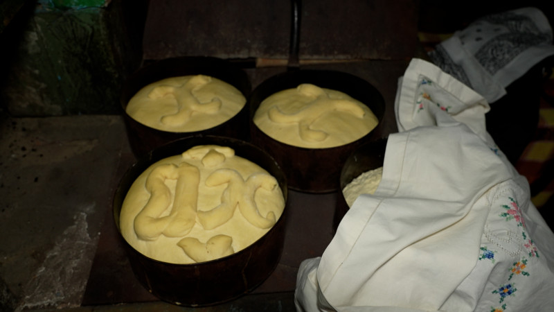 Зі слів жінки, випічка на заквасці вимагає багато часу. Тісто замішують вручну, залишають на кілька годин для ферментації, а потім ще 12 годин воно росте. Для паски господиня використовує лише домашні продукти: козине молоко, масло власного виробництва, домашні яйця та борошно.