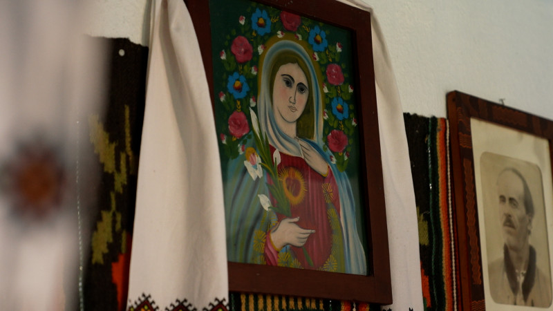 Ікона Богоматері у столітній хаті Мирослави Волощук. Суспільне Івано-Франківськ