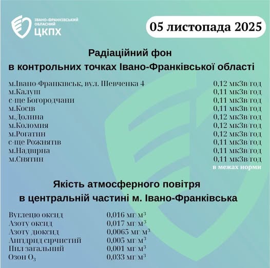 “Інформацію про показники радіаційного фону та стану повітря можете відстежувати на офіційному сайті Івано-Франківського обласного центру контролю та профілактики хвороб за посиланням”, — йдеться в дописі.