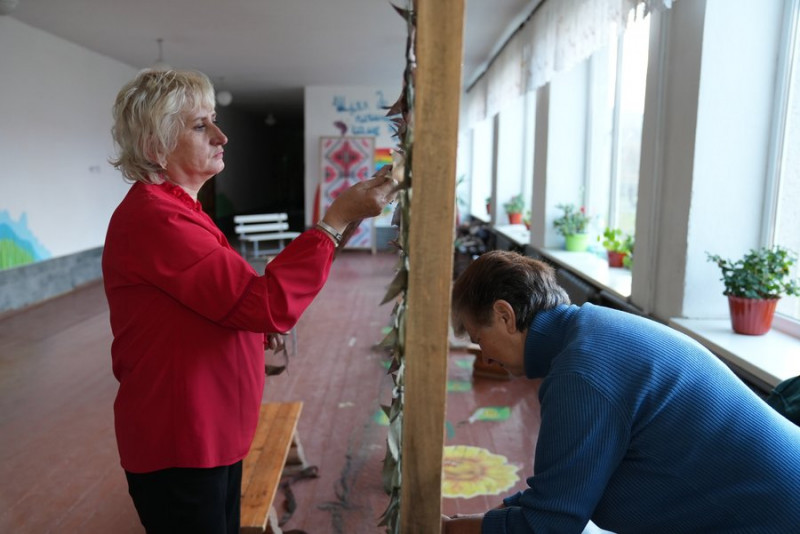 "На перервах діти підходять, вчителі, коли мають "вікна", тобто час без уроків. Підходять прибиральники, технічний персонал, також люди із села допомагають. Вони плетуть з понеділка по п'ятницю, поки працює ліцей, також на вихідні, коли кому виходить, тоді збираються на вихідні", — каже Марія Луцак.