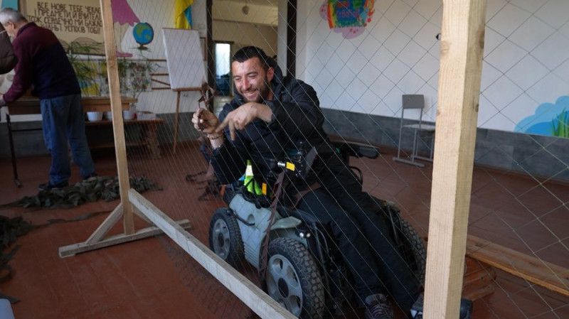 24-річний Роман Попович щодня плете маскувальні сітки для ЗСУ у Княждвірському ліцеї, що у Печеніжинській громаді. Хлопець колись там навчався, а тепер приїздить у школу на колісному кріслі з іншого кінця села, аби допомагати воїнам. Дорога в один бік займає 40 хвилин, а іноді й годину.