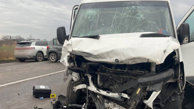 Внаслідок аварії 67-річна пасажирка рейсового мікроавтобуса загинула на місці події. Вісьмох людей з травмами різного ступеня тяжкості госпіталізували до лікарні.