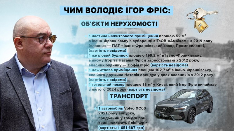 Яке цінне майно належить Ігорю Фрісу та його дружині Наталії. Інфографіка: Суспільне Івано-Франківськ