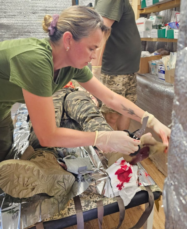 Надія Романюк надає медичну допомогу пораненому воїну. Facebook/Сили територіальної оборони ЗСУ
