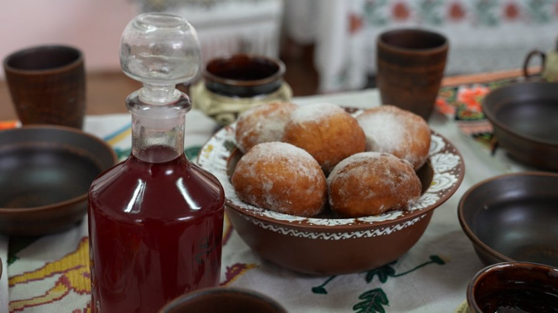 Імпровізований святковий стіл з пампухами в світлиці клубу. Суспільне Івано-Франківськ