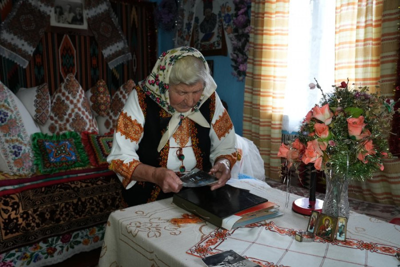 Вишивальниця Мирослава Смеречук переглядає старі фотографії у своїй хаті. Суспільне Івано-Франківськ/Назар Вінтонюк