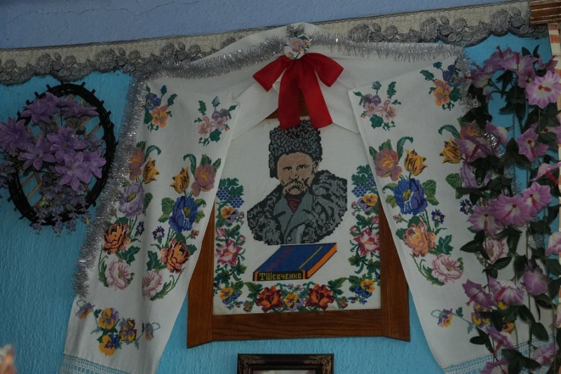 Вишитий рушник і портрет Тараса Шевченка в хаті Мирослави Смеречук. Суспільне Івано-Франківськ/Назар Вінтонюк
