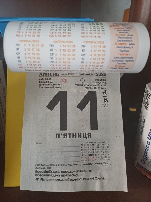Календар, на якому досі 11 липня 2025 року. Ірина Осіпова
