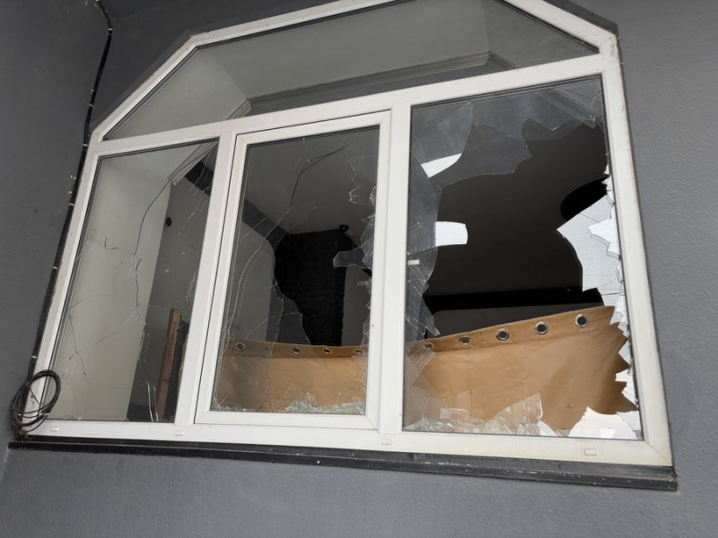 Розбиті вікна у тимчасовому приміщенні Калуського районного ТЦК та СП, 22 вересня 2025. Суспільне Івано-Франківськ/Дмитро Ткач
