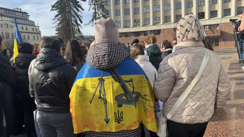 Мирний пікет на підтримку 102 окремої бригади ТрО в Івано-Франківську, 14 листопада 2025. Суспільне Івано-Франківськ