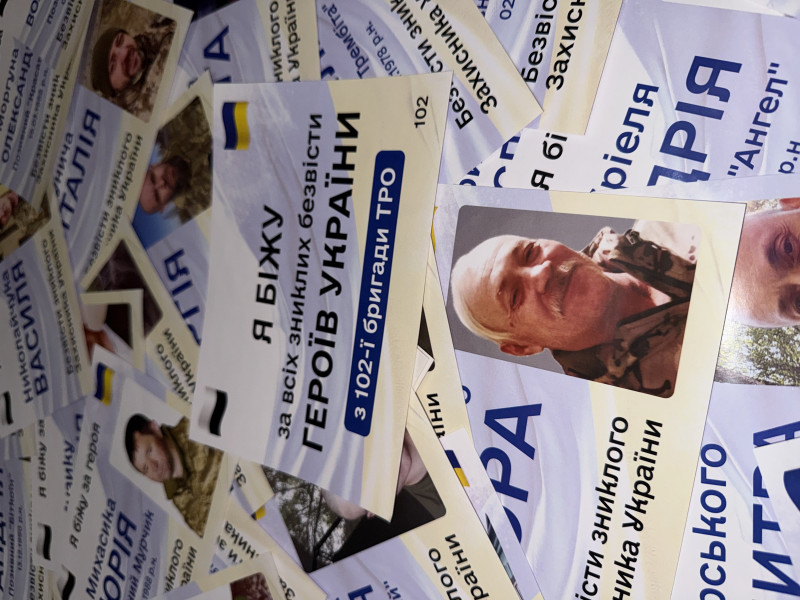 Наліпки зі світлинами та іменами зниклих безвісти воїнів. Альона Стефаник
